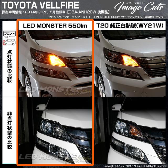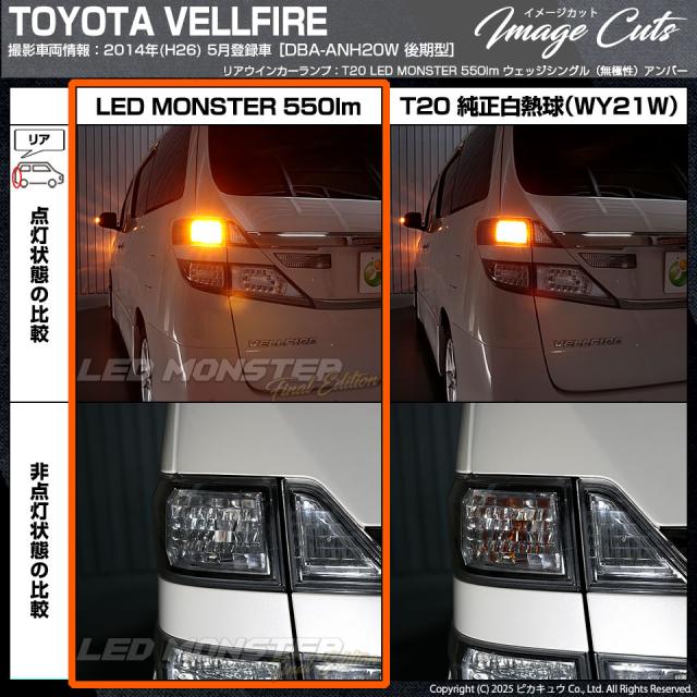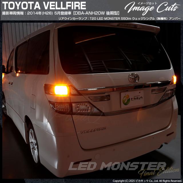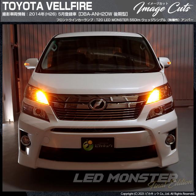 ピカキュウ,LED専門店ピカキュウ,LED,ウインカー球,オレンジ球,ウインカーラン,ターンシグナルランプ,ハザードランプ,LED MONSTER,LEDモンスター,t20,T20シングル,ウェッジ球,wy21w,w21w,WY21W,W21W,オレンジ,アンバー,橙,トヨタ,ヴェルファイア,ベルファイア,20系ベル,TOYOTA,VELLFIRE,ANH20系,GGH20系,後期