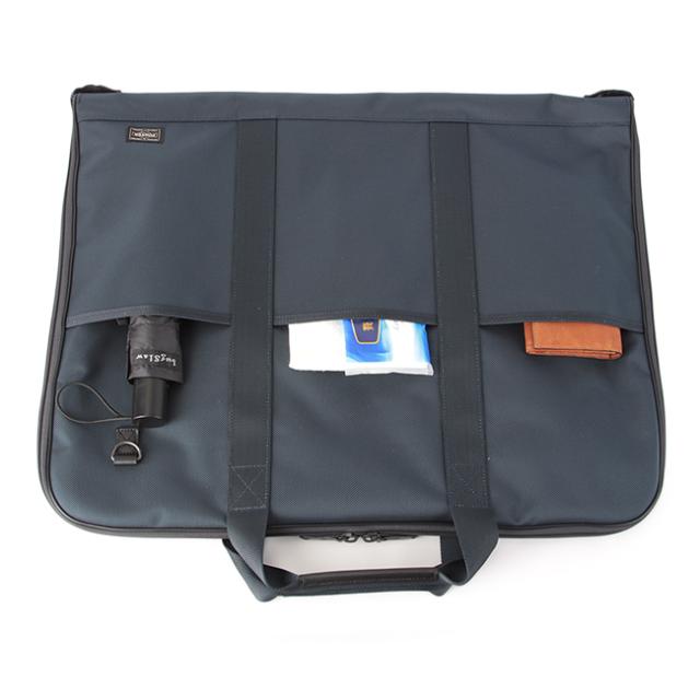 【ブランド】ポーター【シリーズ】ポーター/ステージ【形状】2WAYガーメントケース【外寸】W575/H450mmmm【重量】1115g【表地】Airtec1680ナイロン中空糸オックス(ウレタンコーティング)【裏地】ナイロンオックス(ウレタンコーティング)【付属】牛ステア(コンビネーション鞣し)