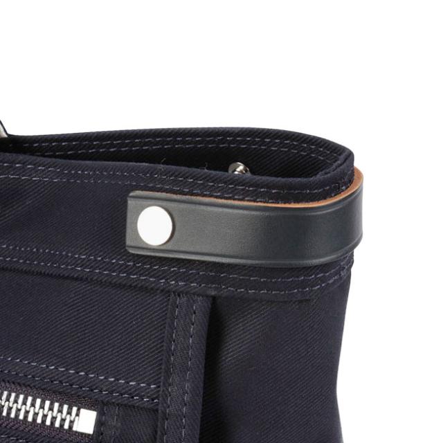 | ワークテイストのディテールを取り入れ、シンプルながらも都会的で普遍的なデザインが魅力の「PORTER NAKED(ネイキッド)」シリーズです。 本体生地のコットンサージに同系色のレザーを組み合わせることで、カジュアルながら上品な雰囲気に仕上げました。カバンを自立・形成させるへりまきを口元にまとめこむことで、幅広のマチながらも全体的にすっきりとまとまったフォルムに仕上げているもの特徴です。 メイン素材にはワークウェアやユニフォームにも使われるコットンサージを採用し、通常のものよりも太番手で高密度に織ることで、上品で光沢のある生地に仕上げました。生地の裏面にはPVC加工を施し、防水性に加えて一枚生地ならではの軽さも兼ね備えました。内装の生地はライトグレーカラーで視認性が高く、中の荷物を探しやすいのが特徴です。 付属の革は「丘染め」という革の表面だけを染色する方法を用いています。表面の透明感と切り目のヌメ色が映えるデザインで、使うにつれて自然なエイジングを楽しむことができます。 |