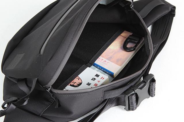 フロントファスナーポケットには文庫本などの小物を収納することができます。