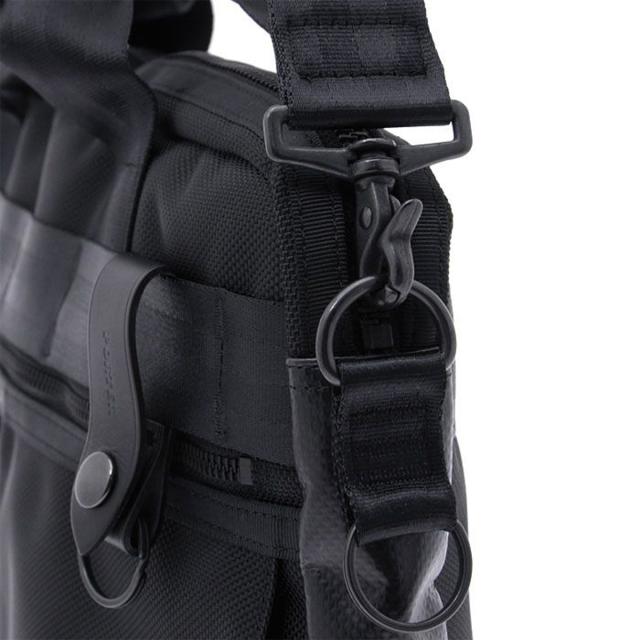 | 耐久性と耐水性に優れた2種類の異なる素材を組み合わせ、無骨でスタイリッシュなデザインが魅力の「HEAT(ヒート)」シリーズです。 2001 A/Wのシリーズ発表以来、その時代のライフスタイルに合わせたアイテムの追加を行いながら、ビジネスバッグから小物まで幅広い方にお使いいただける豊富なラインナップを取り揃えています。 車のエアバッグや防弾チョッキにも使われる耐熱・耐摩擦・引裂強度に優れた66ナイロン糸で織り上げた日本製のバリスターナイロンをメイン素材にしています。一部分に工業用資材として用いられる耐水性の高いターポリン生地を使用しています。黒一色のワントーンでありながら、異なる質感の生地を組み合わせることでコントラストの効いたスタイリッシュなデザインに仕上げています。 随所にミリタリーのギミックを加え、ナイロンテープを一定間隔で縫製することでポーチや小物を取り付けられるPALS(パルス/Pouch Attachment Ladder System)を採用しているのもポイントです。カラビナやウォレットチェーンなどでお手持ちの小物をコーディネートできるように、本体にはDカンや二重リングも取り付けました。 バッグ本体には高密度に織り上げた厚手のナイロンテープを要所に配し、生地のたるみを防止した立体的なシルエットとハンドリングの良さを与えています。 ポーチとウォレット、ペンケース以外の全型にヌメ革の着脱式キーホルダーとPORTERの刻印入りマグライトが付属します。(※マグライトには保証書・キーホルダー・電池・アテンションが付属し、専用ケースにまとめています。) |