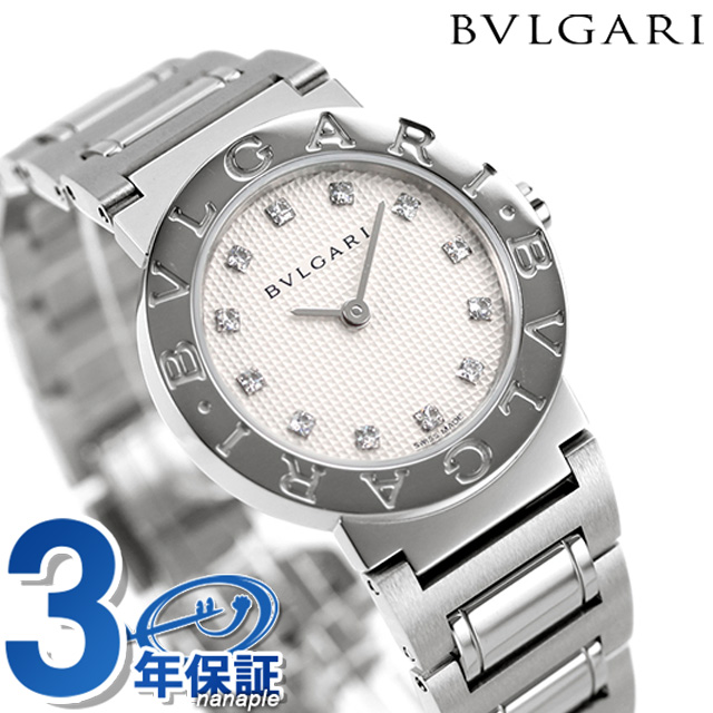3年保証キャンペーン ブルガリブルガリ 26mm ダイヤモンド スイス製 クオーツ レディース 腕時計 BB26WSS12 BVLGARI BVLGARI 26mm アナログ シルバー 新品 ◆世界中から愛される代表的なブランド「BVLGARI(ブルガリ)」。1884年、ソティリオ・ブルガリが、ローマにジュエリー店を開いたのが始まりです。1970年代には世界へ大きく進出し、大胆かつ革新的なスタイルは多くの人々の心を掴みました。時計だけではなくフレグランス・アクセサリー、更にはブルガリホテルやチョコレートなどを展開。幅広くラグジュアリーライフの提案を行っており、今もなお世界中の人々を魅了し続けています。 1977年に発表され、2015年に40周年を迎えたブルガリ ブルガリシリーズ。ブルガリの代表的な人気コレクションです。ベゼルに「BVLGARI BVLGARI」のロゴを刻印で配置。古代ローマのコインからインスピレーションを受け、デザインされました。ブルガリらしい華やかさと、シンプルで洗練されたデザインは幅広い方にご愛用いただけます。