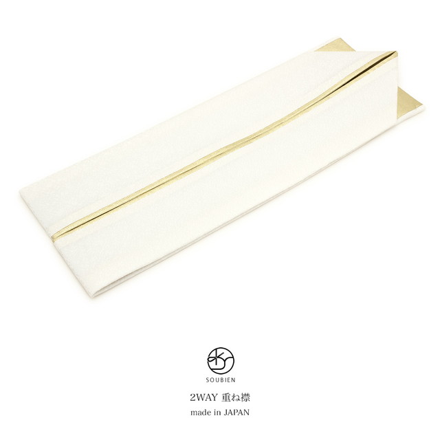 重ね衿 伊達衿 重ね襟 白 ホワイト 金色 ゴールド シンプル リバーシブル 両面 2way 正絹 伊達襟 着物 振袖向け 成人式向け 和装小物 日本製 メール便対応