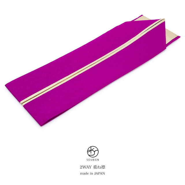 重ね衿 伊達衿 重ね襟 赤紫色 パープル 金色 ゴールド シンプル リバーシブル 両面 2way 正絹 伊達襟 着物 振袖向け 成人式向け 和装小物 日本製 メール便対応
