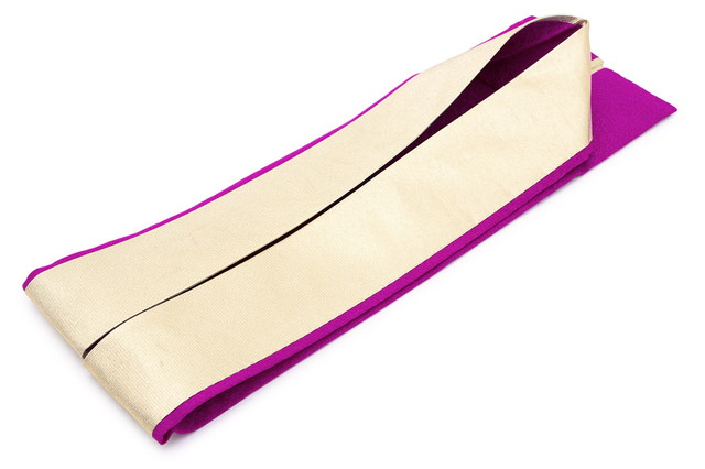シンプルな地文の意匠と金無地のリバーシブルとなっており、衿の内側と外側の見せ方を替えて4通りの使い方ができます。