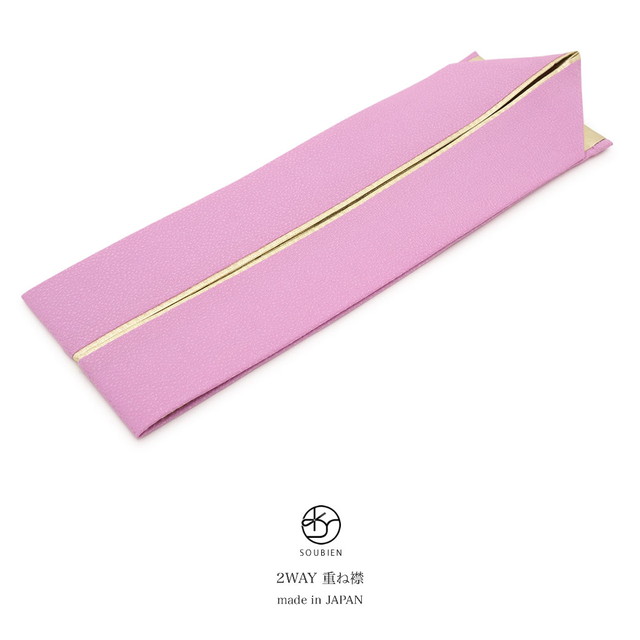 重ね衿 伊達衿 重ね襟 薄紫色 ペールパープル 金色 ゴールド シンプル リバーシブル 両面 2way 正絹 伊達襟 着物 振袖向け 成人式向け 和装小物 日本製 メール便対応