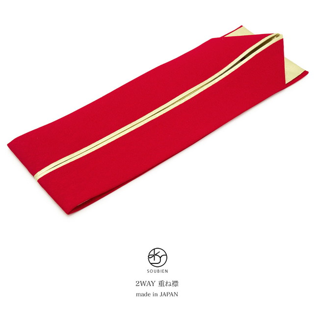 重ね衿 伊達衿 重ね襟 赤 レッド 金色 ゴールド シンプル リバーシブル 両面 2way 正絹 伊達襟 着物 振袖向け 成人式向け 和装小物 日本製 メール便対応