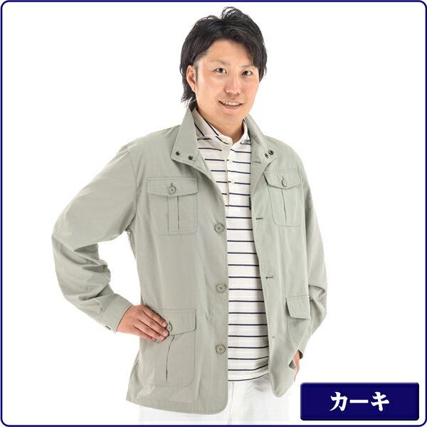 父の日 メンズ 綿混 軽量 サファリジャケット サマージャケット 多機能ポケット付き スタンド衿 ハーフコート 敬老の日 ギフト や 誕生