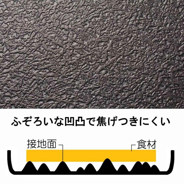 ●凹凸加工が食材を点で支え、油なじみも早くこびりつきにくいのが魅力です。