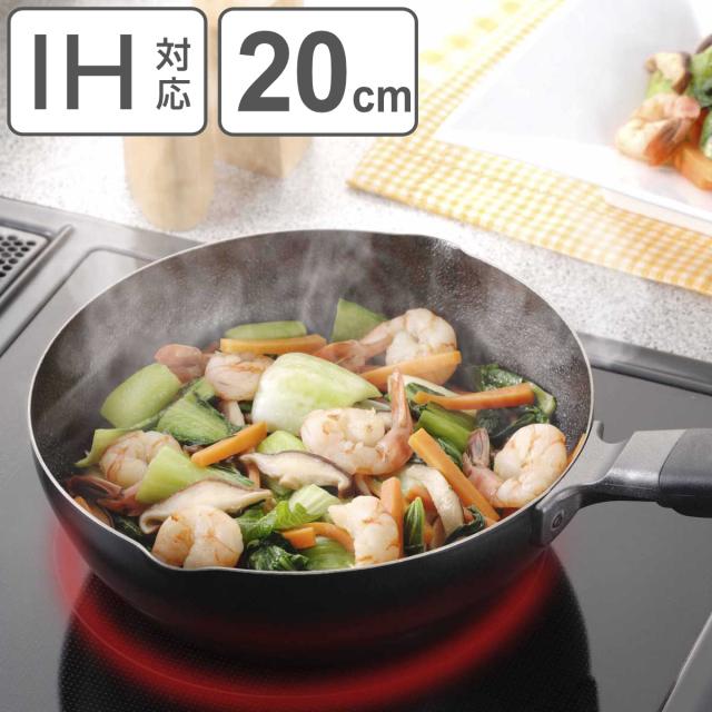 炒め鍋 20cm IH対応 鉄製 ファイバーライン加工 ( ガス火対応片手鍋 いため鍋 深型 鉄フライパン 20センチ フライパン ih対応 20cm フライパン 20cm フライパン 鉄)