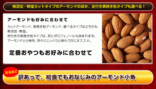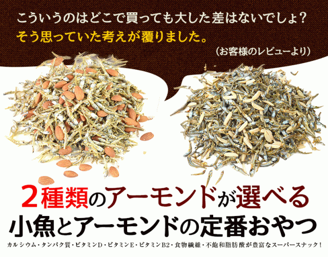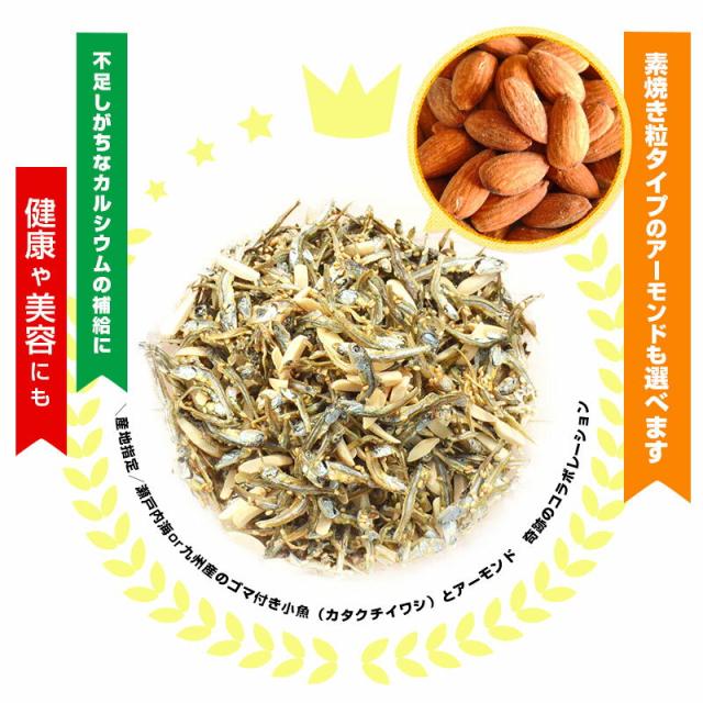 素焼き・無塩のアーモンドが小魚の美味しさをより引き立てます。