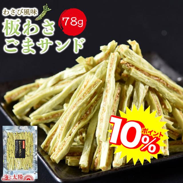 【P10%還元!】<板わさごまサンド78g>わさびがつーん!ビールがすすむ! おつまみ わさび ゴマ ワサビ ゴマサンド 胡麻 送料無料 おやつ 海と太陽 ポイント消化 クーポン消化 魚肉 1000円以下 食品 バレンタインデー