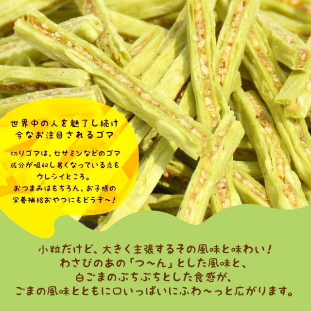 - 何度目かのリピートです! ほんのり山葵が効いていて胡麻の食感も良く 美味しいです。袋を開けると途中で止めることができず、いつもペロッただ食べてしまいます。