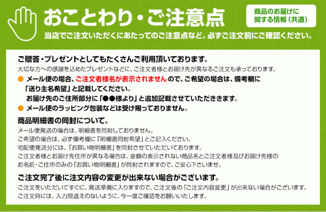 お買い上げ明細書について 本商品には、お買い上げ明細書をお付けしておりません。ご希望される場合は、「ご注文時の備考欄」に「お買い上げ明細書希望」とご記入ください。