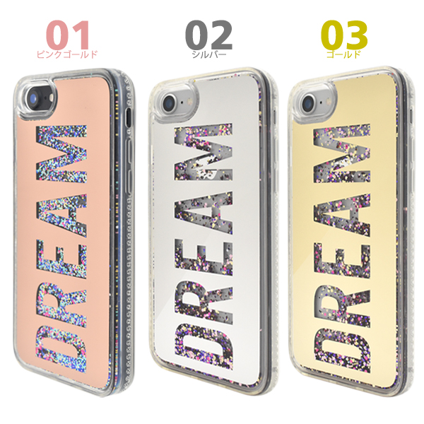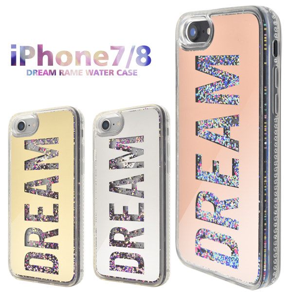 iPhone7 iPhone8 iPhoneSE(第二世代)用 DREAMロゴ ラメウォーターケース ラメが流れる キラキラデコケース お洒落 スマートフォンケース SoftBank au docomo