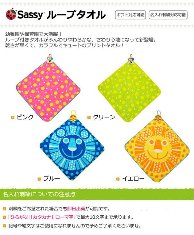 Sassy ループタオル 名入れ 刺繍 名前入り サッシー ミニタオル カラフル ハンカチ ギフトセット プレゼント
