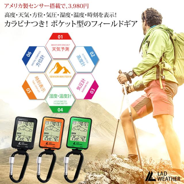 キャンプや登山で役立つ、アウトドア・ギア! 高度/気圧/温度/湿度/方位/天気がわかる アウトドア グッズ カラビナ付き ラドウェザー 送料無料