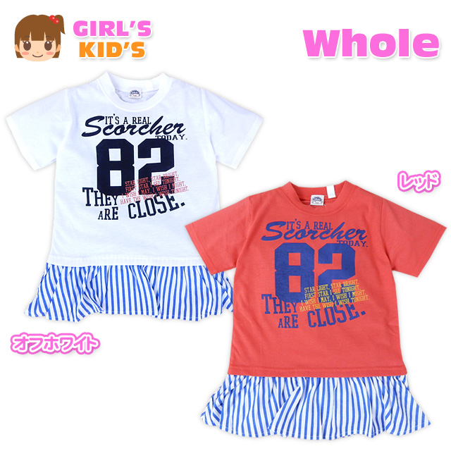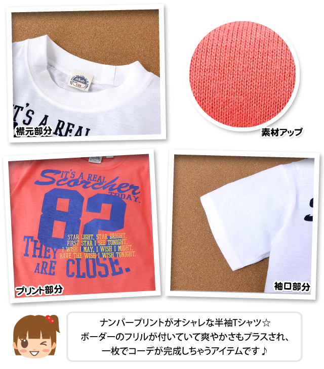 【送料無料】子供服 女の子 Tシャツ 半袖 ナンバープリント 裾フリル 女児 キッズ【メール便対応】
