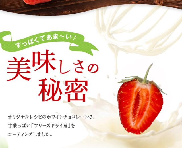 ココアバター、全粉乳、砂糖、乾燥いちご、乳糖/乳化剤、香料、(一部に乳成分・大豆を含む)