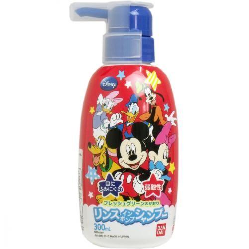 【発売元:バンダイ】髪をしっとりなめらかに!!「ミッキーマウス」のリンスインシャンプー♪お子様でも使いやすいポンプタイプです。お子様の髪と頭皮をやさしく洗う、目にしみにくい弱酸性のシャンプーです。