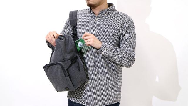 メインルームはB5サイズ程度のアイテムが収まるサイズ感。マチ幅が広く設けられているので見た目以上にたっぷりアイテムを収納していただけます。開口部にはファスナーを4つ装備することでどの方向からも開け閉めしていただくことが可能です。