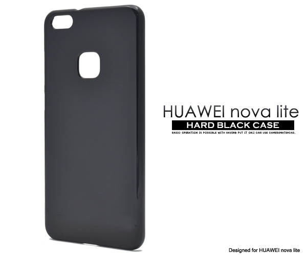 スマホケース HUAWEI nova lite ハードブラックケース 黒色ハードケース HUAWEI ファーウェイ nova lite SIMフリー用 ケース 艶有り 無地 硬い シンプル