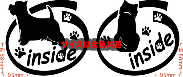 車 ステッカー 犬 ステッカー ウェストハイランドホワイトテリア inside (横後1セット) カッティングステッカー 全12色 犬 ドッグ ワンちゃん インサイド 乗ってます かわいい 可愛い 窓 ウィンドウ 手軽 ステッカー 防水 耐水 アウトドア デカール 転写シール 88mmX95mm (D)