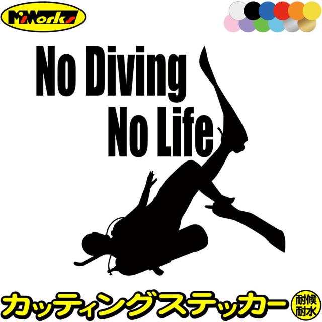 ダイビング ステッカー No Diving No Life ( ダイビング )4 カッティングステッカー 全12色 車 窓 リアガラス かっこいい 潜水 海 グッズ nolife ノーライフ ノー ダイビング ステッカー 防水 耐水 アウトドア デカール 転写シール 180mmX195mm (SP)