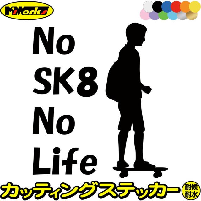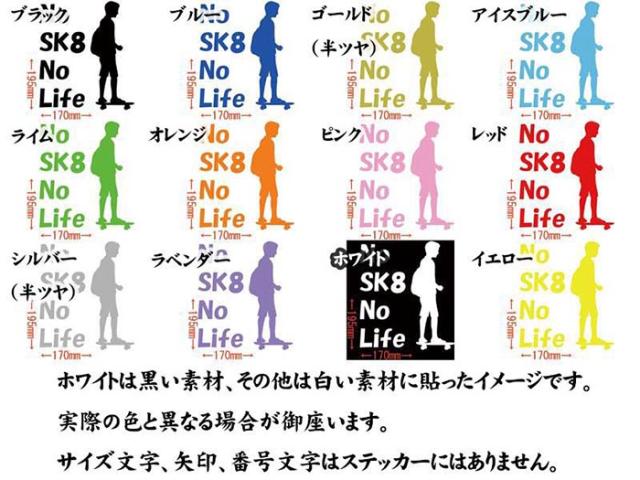スケボー スケートボード ステッカー No SK8 No Life ( スケートボード )3 カッティングステッカー 全12色 車 ウィンドウ 窓ガラス かっこいい グッズ nolife ノーライフ ステッカー 防水 耐水 アウトドア デカール 転写シール 195mmX170mm (SP)