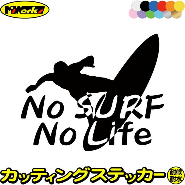 サーフィン ステッカー No Surf No Life ( サーフィン )10 カッティングステッカー 全12色 サーファー 車 かっこいい サーフ グッズ 波乗り 波 ボード リアガラス ステッカー 防水 耐水 アウトドア デカール 転写シール 160mmX195mm (SP)