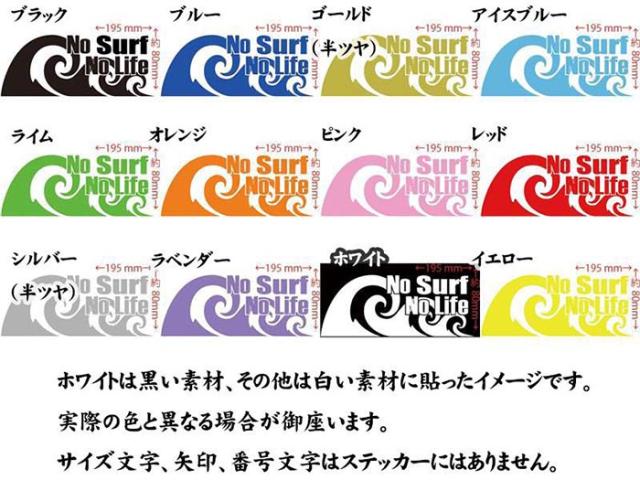 サーフィン ステッカー No Surf No Life ( サーフィン )92 カッティングステッカー 全12色 サーファー 車 かっこいい サーフ 波乗り サーフボード ウィンドウ リアガラス ステッカー 防水 耐水 アウトドア デカール 転写シール 80mmX195mm (SP)