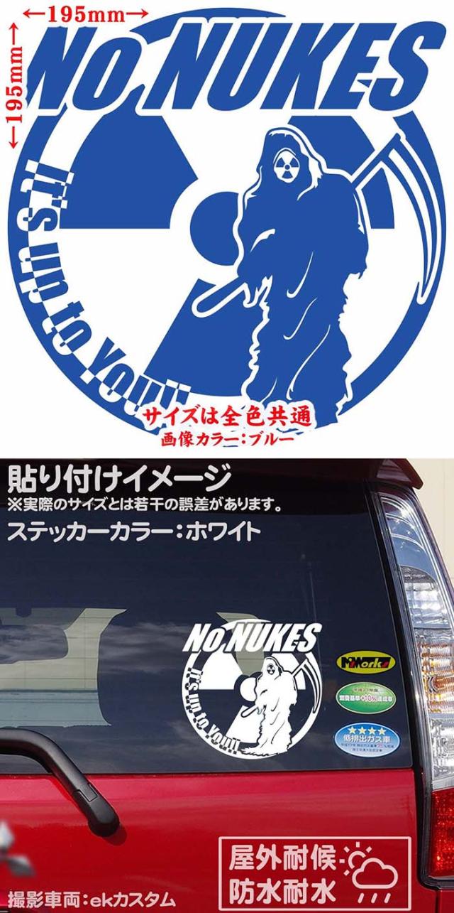 脱原発 ステッカー 脱原発 ( 原発反対 核廃棄 ) No NUKES!! H カッティングステッカー 全12色 車 ウィンドウ 窓 かっこいい 主義 アピール 未来の為 原発反対 No NUKES ステッカー 防水 耐水 アウトドア デカール 転写シール 195mmX195mm