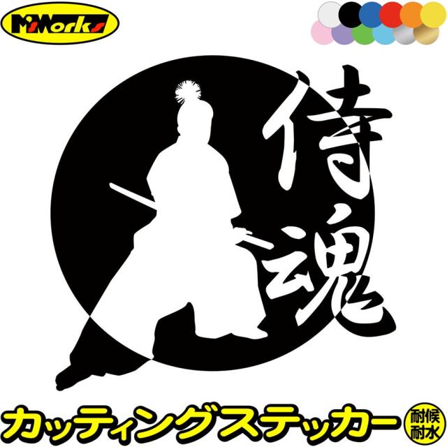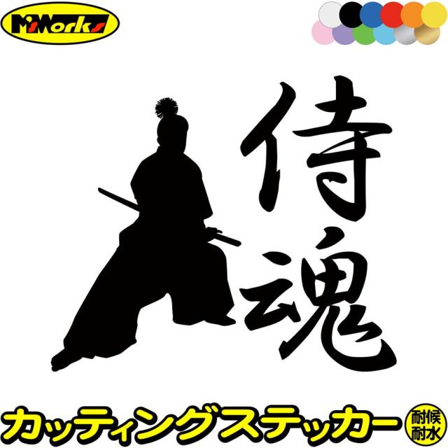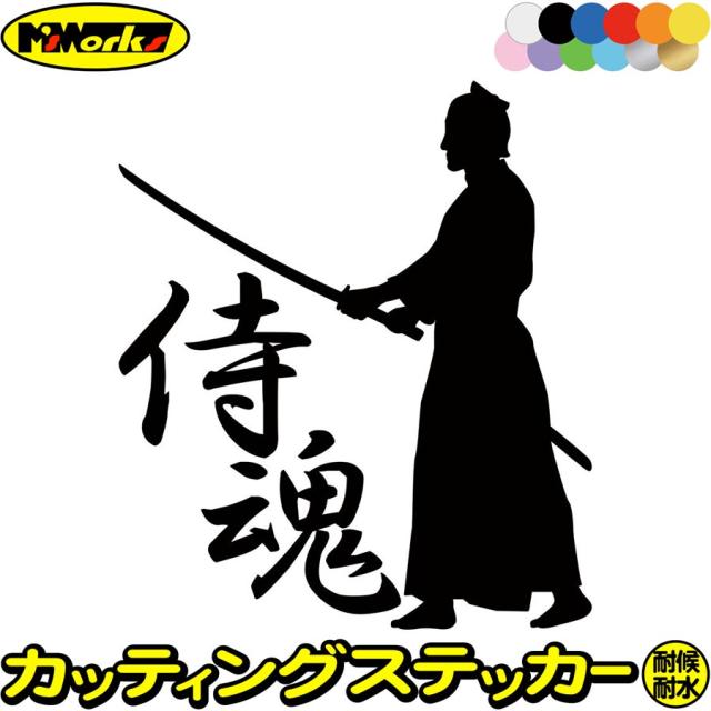 車 かっこいい ステッカー 侍魂 ( SAMURAI SPIRIT ) ・2-2 カッティングステッカー 全12色 バイク ジャパン 侍 武士 和柄 和風 バンパー ボディ ウィンドウ カウル 侍 ステッカー 防水 耐水 アウトドア デカール 転写シール 190mmX195mm