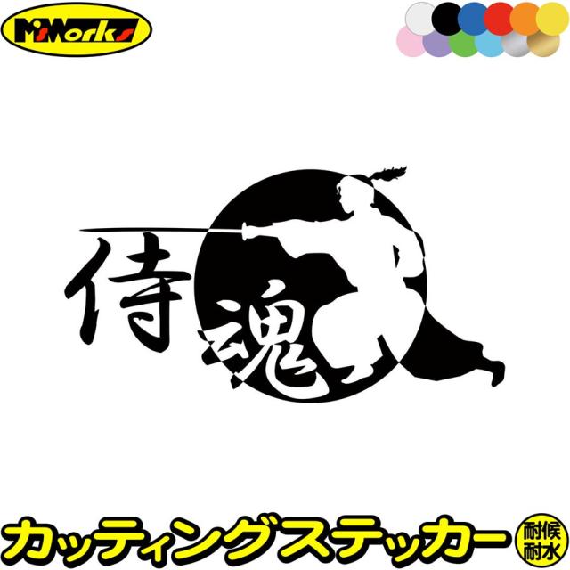 バイク 車 かっこいい ステッカー 侍魂 ( SAMURAI SPIRIT ) ・2-4 カッティングステッカー 全12色 ジャパン 侍 武士 和柄 和風 バンパー ボディ ウィンドウ カウル 侍 ステッカー 防水 耐水 アウトドア デカール 転写シール 105mmX195mm