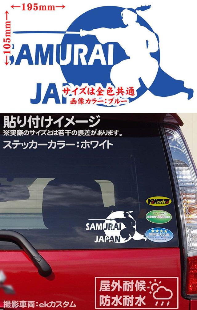 車 バイク かっこいい ステッカー SAMURAI JAPAN ( 侍 サムライ )4-2 カッティングステッカー 全12色 ジャパン 侍 武士 和柄 和風 タンク ウィンドウ カウル 侍 ステッカー 防水 耐水 アウトドア デカール 転写シール 105mmX195mm
