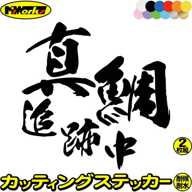 釣りステッカー 面白い 魚 追跡中 釣り (2枚1セット) ・2 カッティングステッカー 全12色 釣り 車 バイク かっこいい フィッシング 魚釣り クーラーボックス おもしろ 漢字 ステッカー 防水 耐水 アウトドア デカール 転写シール 95mmX95mm (F)