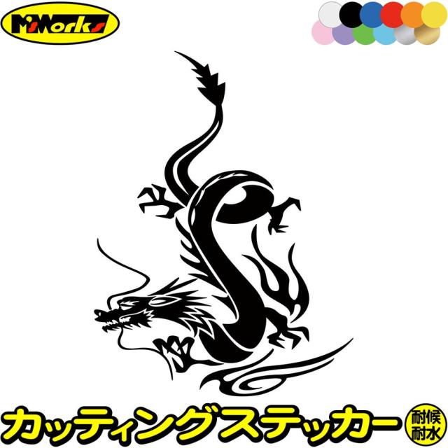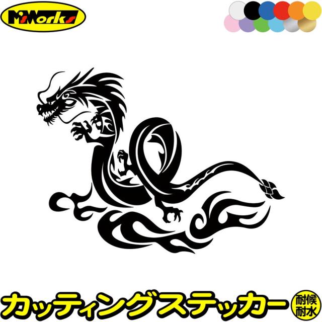 車 バイク かっこいい ステッカー ドラゴン 龍 トライバル 2(左向き) カッティングステッカー 全12色 龍神 竜 dragon キズ隠し ボディ カウル ドラゴン ヤンキー ステッカー 防水 耐水 アウトドア デカール 転写シール 120mmX160mm