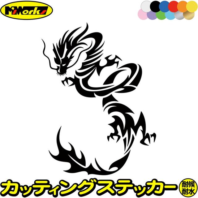 車 バイク かっこいい ステッカー ドラゴン 龍 トライバル 13(左向き) カッティングステッカー 全12色 龍神 竜 dragon ボディ タンク カウル ドラゴン ヤンキー ステッカー 防水 耐水 アウトドア デカール 転写シール 160mmX120mm