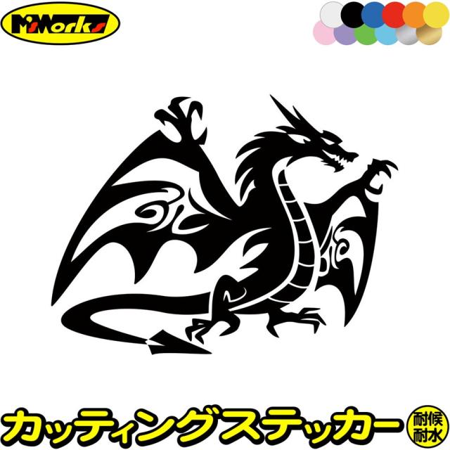 バイクステッカー 車ステッカー カー用品 ドラゴン 龍 トライバル 2(右向き) カッティングステッカー 全12色 龍神 竜 dragon 傷隠し ボディ バンパー カウル ドラゴン ヤンキー ステッカー 防水 耐水 アウトドア デカール 転写シール 120mmX160mm