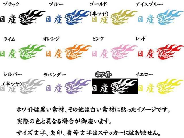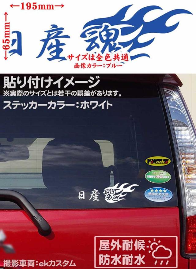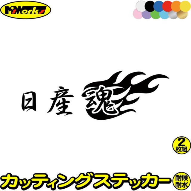 ニッサン nissan ステッカー 日産魂 ( ニッサン ダマシイ ) (2枚1セット) カッティングステッカー 全12色 車 かっこいい ファイヤー リア ウィンドウ ガラス ニッサン ステッカー 防水 耐水 アウトドア デカール 転写シール 65mmX195mm (C)