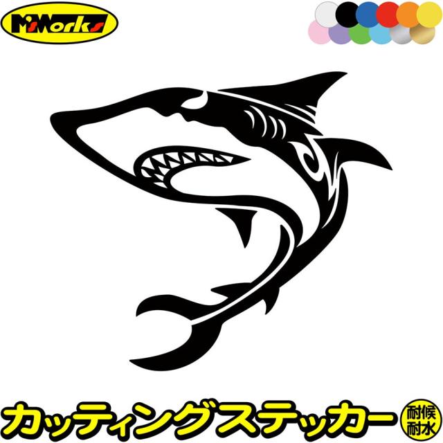 車 バイク ヘルメット かっこいい ステッカー シャーク shark サメ 鮫 トライバル 3(左向き) カッティングステッカー 全12色 おしゃれ カウル ボンネット スノーボード ステッカー 防水 耐水 アウトドア デカール 転写シール 140mmX160mm