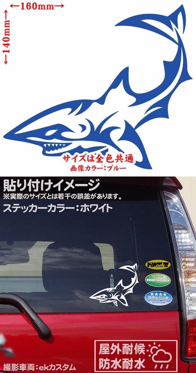 シャーク shark サメ 鮫 トライバル 7(左向き) カッティングステッカー 全12色 車 バイク ヘルメット かっこいい おしゃれ カウル ボンネット スノーボード スーツケース ステッカー 防水 耐水 アウトドア デカール 転写シール 140mmX160mm