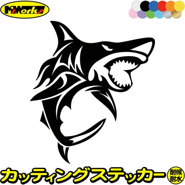 シャーク shark サメ 鮫 トライバル 6(右向き) カッティングステッカー 全12色 車 バイク ヘルメット かっこいい おしゃれ カウル ボンネット スノーボード スーツケース ステッカー 防水 耐水 アウトドア デカール 転写シール 160mmX140mm