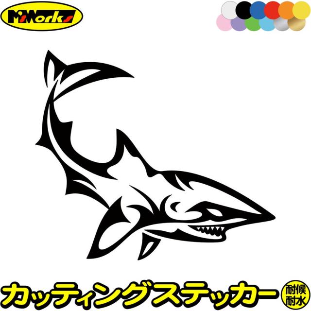 シャーク shark サメ 鮫 トライバル 7(右向き) カッティングステッカー 全12色 車 バイク ヘルメット かっこいい おしゃれ カウル ボンネット スノーボード スーツケース ステッカー 防水 耐水 アウトドア デカール 転写シール 140mmX160mm