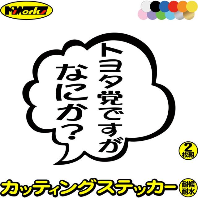 トヨタ toyota ステッカー トヨタ党ですがなにか? (2枚1セット) カッティングステッカー 全12色 車 おもしろ つぶやき 一言 セリフ 吹き出し ユニーク 文字 トヨタ ステッカー 防水 耐水 アウトドア デカール 転写シール 95mmX110mm (TY)