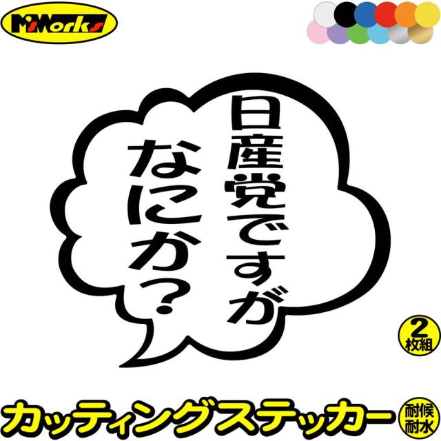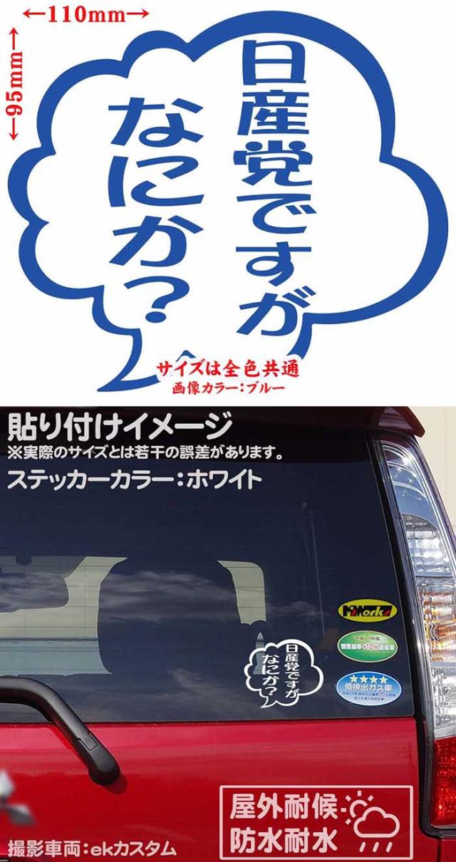 ニッサン nissan ステッカー 日産党ですがなにか? (2枚1セット) カッティングステッカー 全12色 車 おもしろ つぶやき 一言 セリフ 吹き出し ユニーク 文字 ニッサン ステッカー 防水 耐水 アウトドア デカール 転写シール 95mmX110mm (TY)