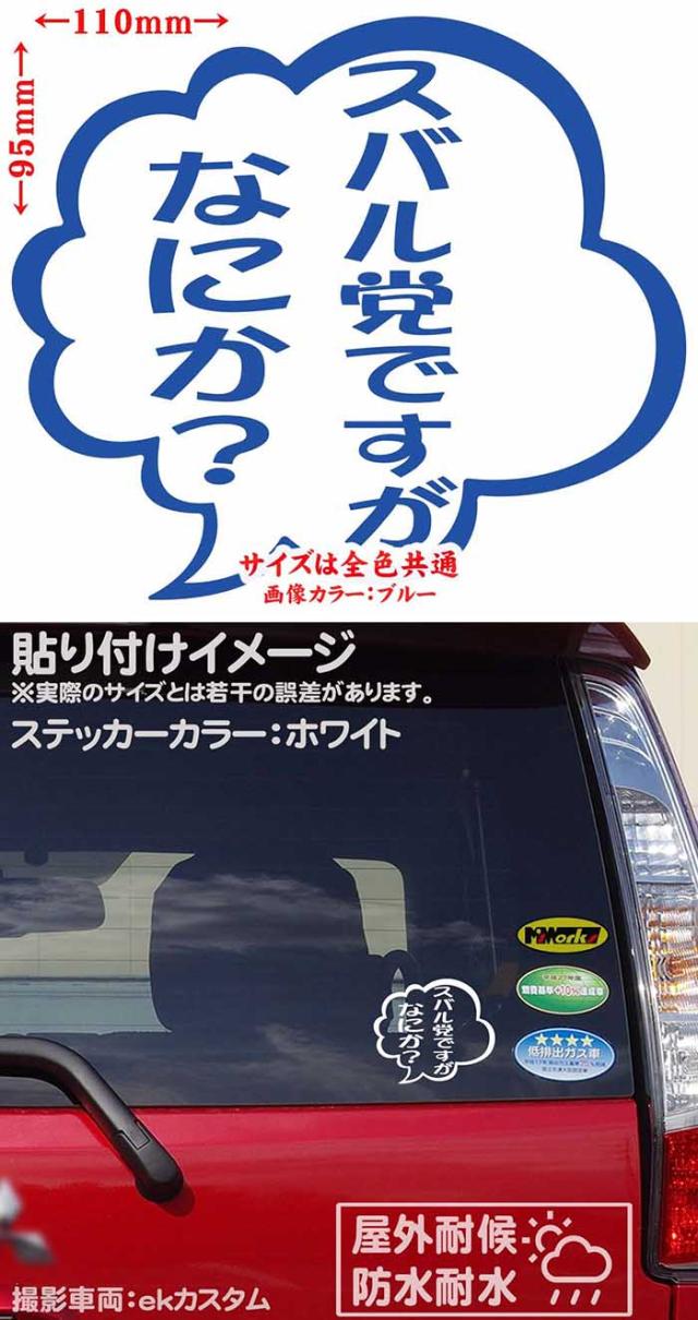 スバル subaru ステッカー スバル党ですがなにか? (2枚1セット) カッティングステッカー 全12色 車 おもしろ つぶやき 一言 セリフ 吹き出し ユニーク 文字 スバル ステッカー 防水 耐水 アウトドア デカール 転写シール 95mmX110mm (TY)