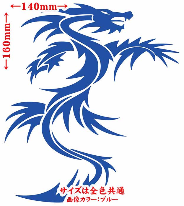 ドラゴン ステッカー ドラゴン 龍 竜 トライバル 1-19(右向き) カッティングステッカー 全12色 バイク 車 かっこいい 龍神 おしゃれ 傷隠し タンク カウル ヘルメット ステッカー 防水 耐水 アウトドア デカール 転写シール 160mmX140mm