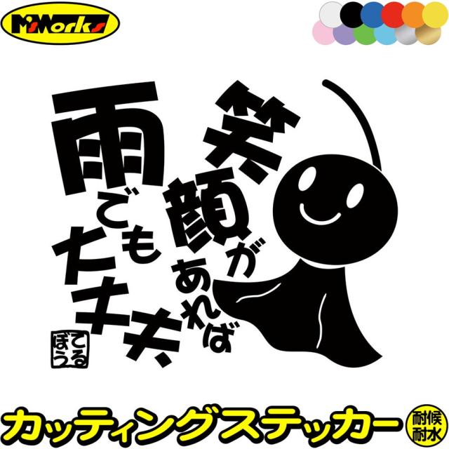 車 バイク かわいい ステッカー てるてる坊主 てるぼう 1 きっと晴れるよ カッティングステッカー 全12色 車 おもしろ ユニーク 可愛い 名言 格言 文字 タンク てるてるぼうず ステッカー 防水 耐水 アウトドア デカール 転写シール 150mmX180mm