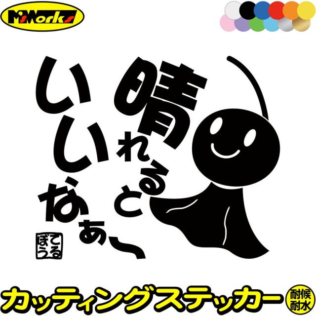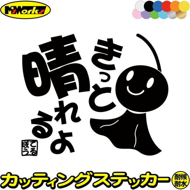 てるてる坊主 てるぼう 4 晴れるから心配しないで カッティングステッカー 全12色 車 バイク かわいい 車 ユニーク おもしろ 可愛い 面白 格言 ヘルメット てるてるぼうず ステッカー 防水 耐水 アウトドア デカール 転写シール 150mmX180mm